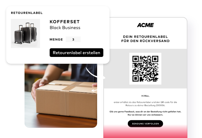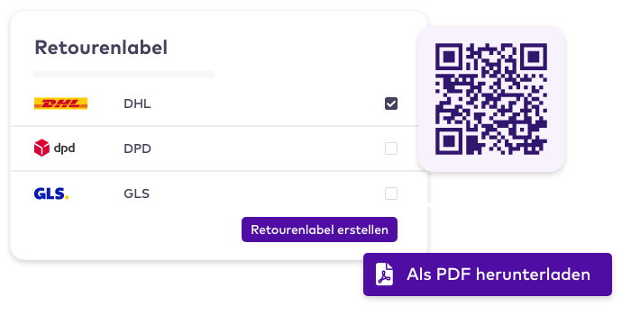 Erstelle digitale Retourenlabels und QR-Codes mühelos und mache Schluss mit lästigem Papierkram. Deine Kunden gehen hierfür ganz einfach auf dein persönliches Retourenportal und wählen ihre bevorzugte Retourenoption aus.