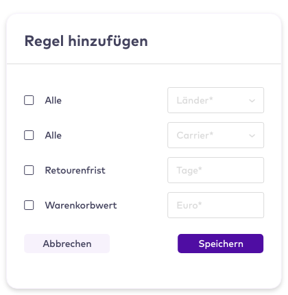 Bestimme selbst, welche Artikel innerhalb welcher Zeitspanne zurückgegeben werden können.