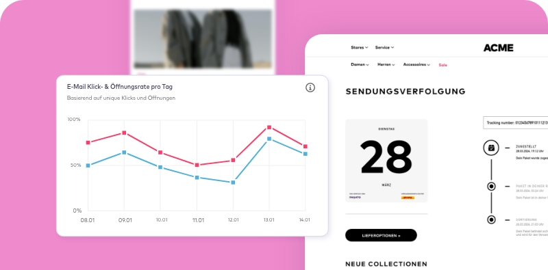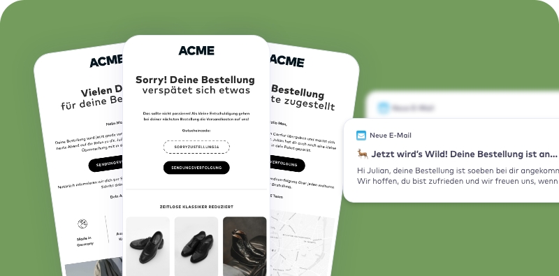 Die hohen Öffnungs- und Klickraten der Versandnachrichten und der Sendungsverfolgungsseite nutzt du als Recruitingkanal, für das Bewerben von Events und zur Steigerung deiner Newsletteranmeldungen. Zudem erzeugen sie den notwendigen Shop-Trust und deine Marketing E-Mails landen im Posteingang und nicht im Spamordner.