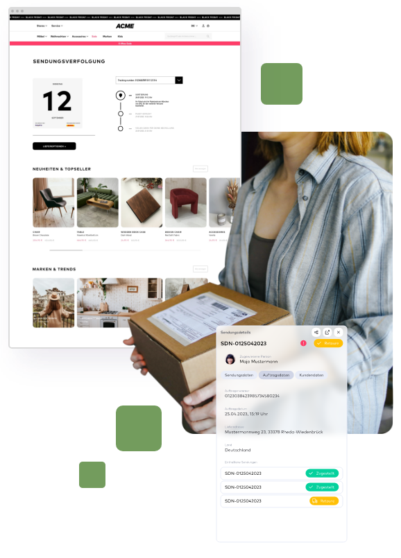 Über einen Sendungsverfolgungslink können Kunden ihr Paket verfolgen, wann immer sie es möchten. Das kann z.B. auf einer Track & Trace Seite in deinem eigenen Shop passieren.