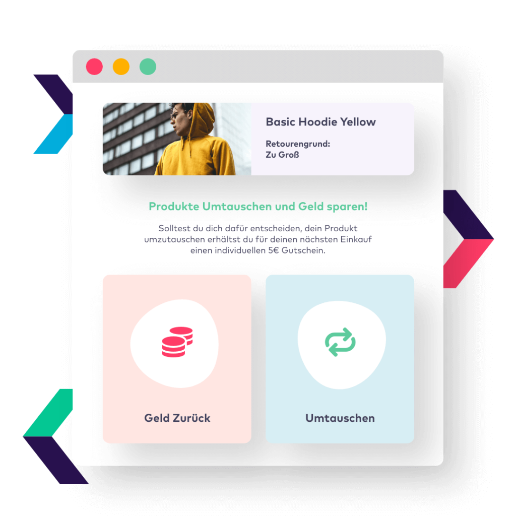 Daneben hast du als Onlinehändler die Möglichkeit, deinem Kunden einen Hinweis auf die Umweltbelastung zu geben, die eine Retoure verursachen würde und damit an das Gewissen des Kunden zu appellieren. Außerdem können auch Belohnungssysteme bei Behalten der Ware eingeführt werden, beispielsweise ein Rabatt für den nächsten Einkauf in deinem Shop.