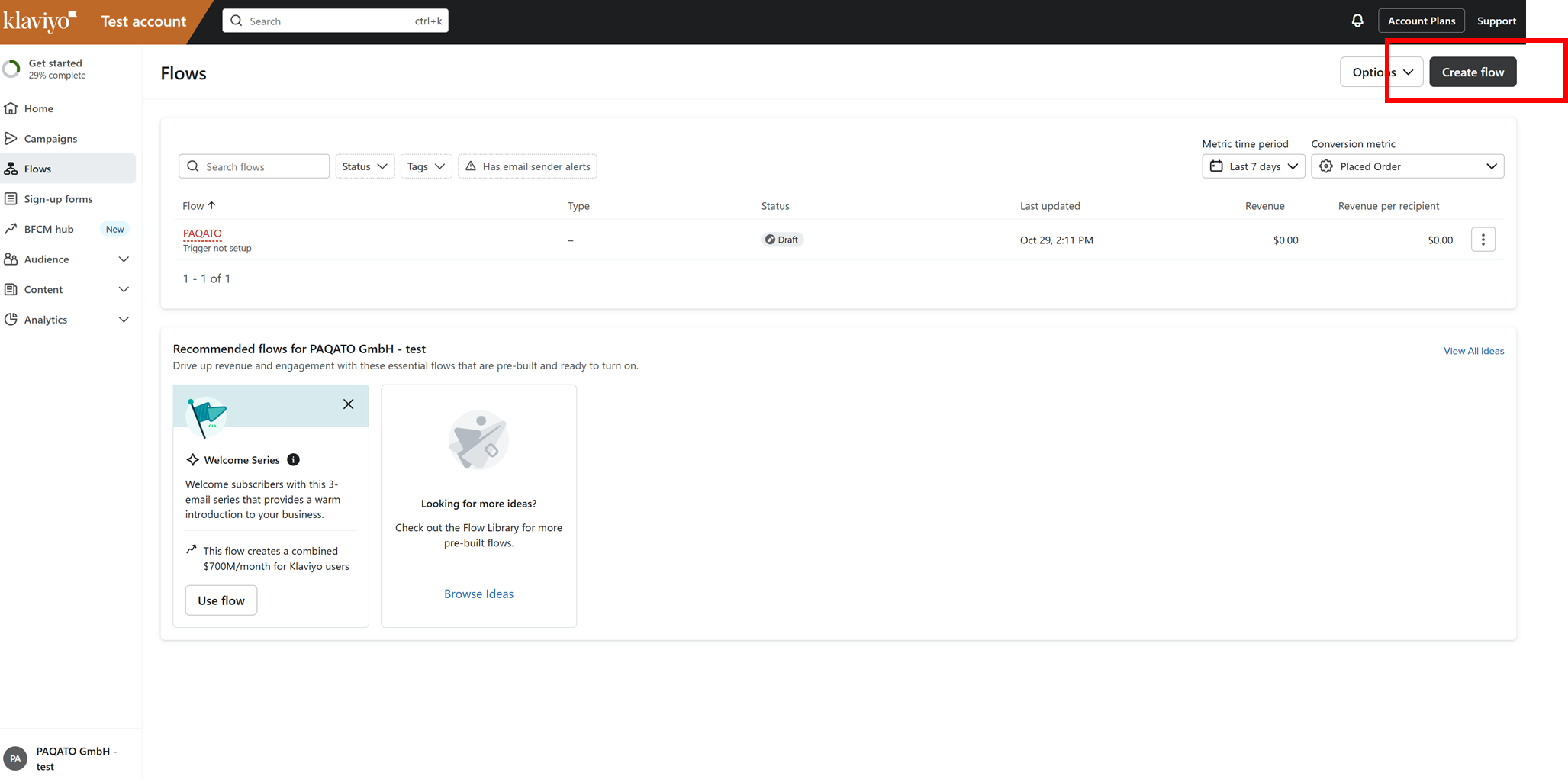 Nach der Freischaltung kannst du eine Verbindung via OAuth zu Klaviyo herstellen. Hierfür musst du lediglich im Integrationsbereich auf den Button „Verbinden“ klicken. Nun laufen die Daten zu den Versandereignissen (bei Klaviyo heißt es “Metriken”) bei Klaviyo ein. Ab sofort kannst du dir hier individuelle Kommunikationsflows erstellen, indem du die Trigger-Ereignisse von PAQATO verwendest.