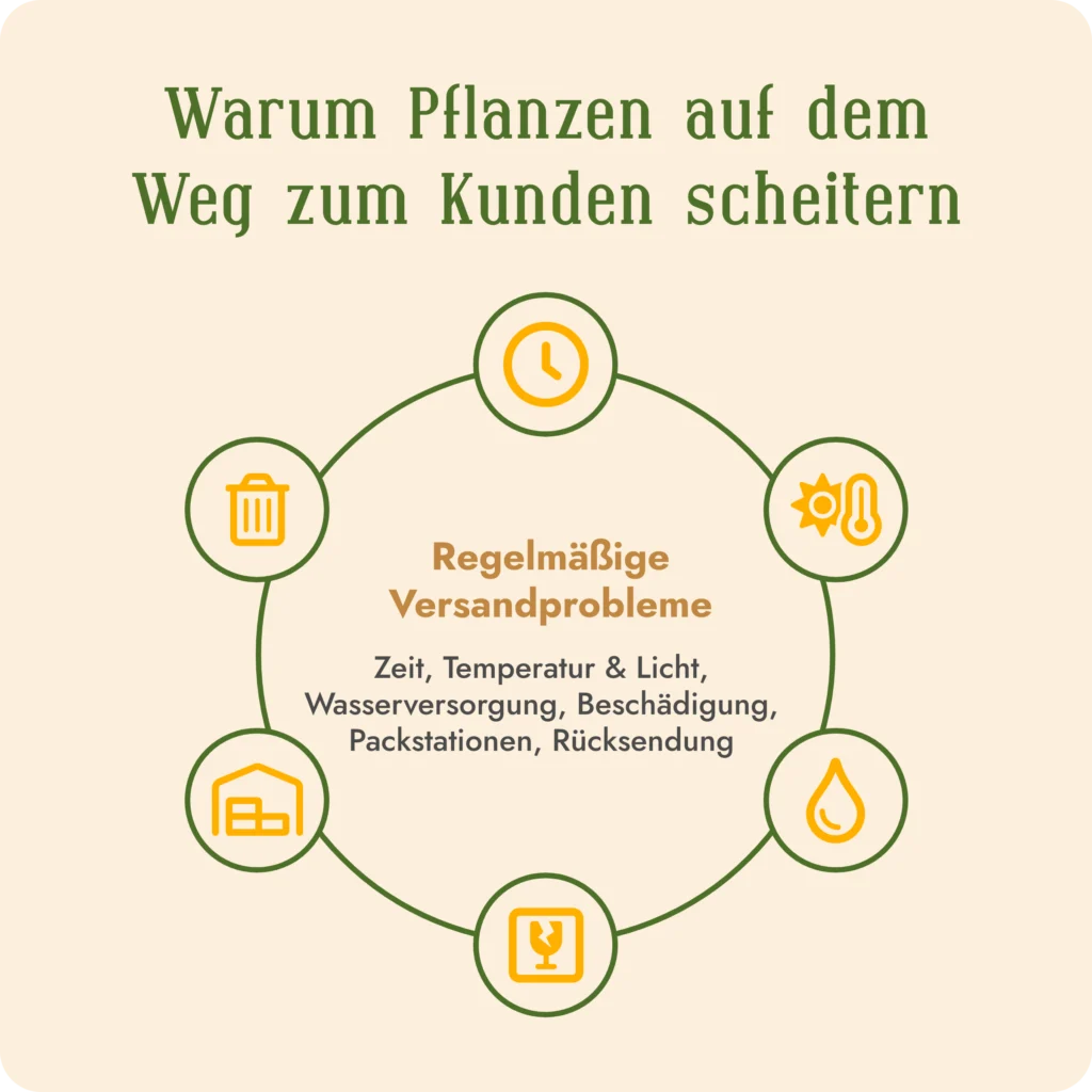 Der Versand von lebenden Pflanzen ist eine komplexe Herausforderung, bei der viele Faktoren berücksichtigt werden müssen. Doch für Meine Orangerie lag die größte Hürde nicht im eigentlichen Transport, sondern in der erfolgreichen Zustellung. Häufig bleiben Pakete mit Pflanzen in Packstationen oder Filialen liegen, und wenn sie nicht rechtzeitig abgeholt werden, ist der Rückversand sowohl kostspielig als auch fatal für die Pflanzen.