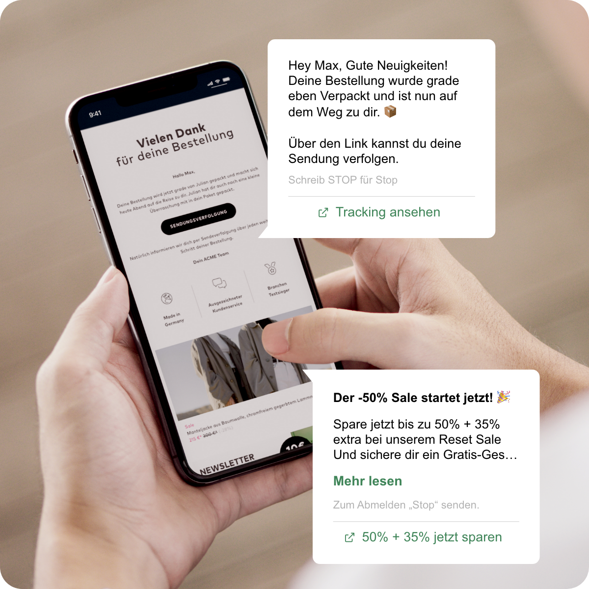 • Höhere Aufmerksamkeit: Kunden sehen Nachrichten direkt auf dem Sperrbildschirm und öffnen diese häufiger als E-Mails.